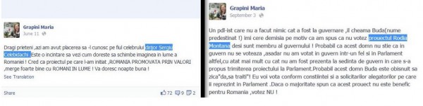 “Am remarcat cu îngrijorare că soamna Ministru poceşte, desigur împovărată de graba de a munci pentru sinele ţării, numeroase nume proprii. În grafia doamnei ministru Frapini proiectul Roşia Montană devine „prouectul Rodia Montana”. Ştiut fiind că fructul rodie, amintit în numeroase basme orientale, este mult mai simpatic decât roşia, doamna ministru Hrapini proiectează, involuntar desigur, această simpatie a rodiei asupra proiectului cu cianuri. Observaţia noastră este făcută cu bune-intenţii, generate de postarea din 29 august a doamnei ministru Crapini: „De ce noi romanii trebuie sa legm mereu din doua rele ???? Proiectul Rosia Montana este clar ca a fost gresit pornit ! Oamenii care ma stiu ,cetatenii din colegiul meu imi cer sa nu votez proiectul de lege pentru inceperea exploatarii ! Ce credeti ca voi face ? …..astept parerea voastra !”. Într-o perioadă în care orice fel de referire la proiectul Roşia Montană naşte controverse încinse, transformarea Roşiei în Rodie poate avea efecte nebănuite pentru doamna Ministru. Asta credem că va face.