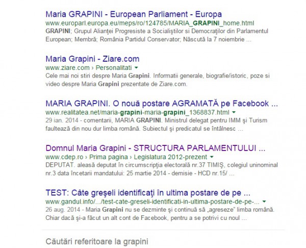 La câte greşeli gramaticale a făcut doamna Grapini în postările de pe internet, nici Google-ul n-a mai suportat. Şi i-a făcut operaţie de schimbare de sex. Asta ca să vadă şi „DOMNUL MARIA GRAPINI” ce nasol este să papi şi să inversezi litere.