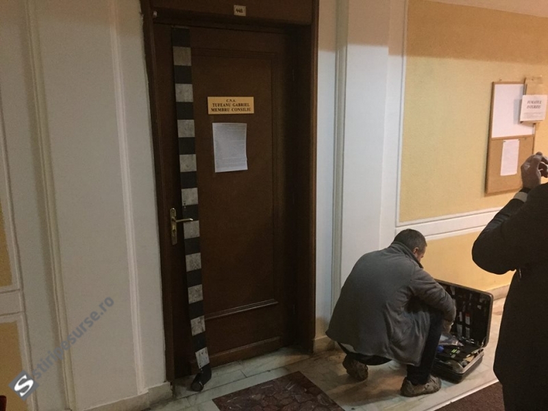 Criminaliștii care au venit să ia amprente de pe ușa biroului domnului Tufeanu probabil nu aveau în așteptare vreo „prospătură” care se vroia palpată, de vreme ce o foaie A4 le-a ținut trusa imobilizată preț de minute bune.