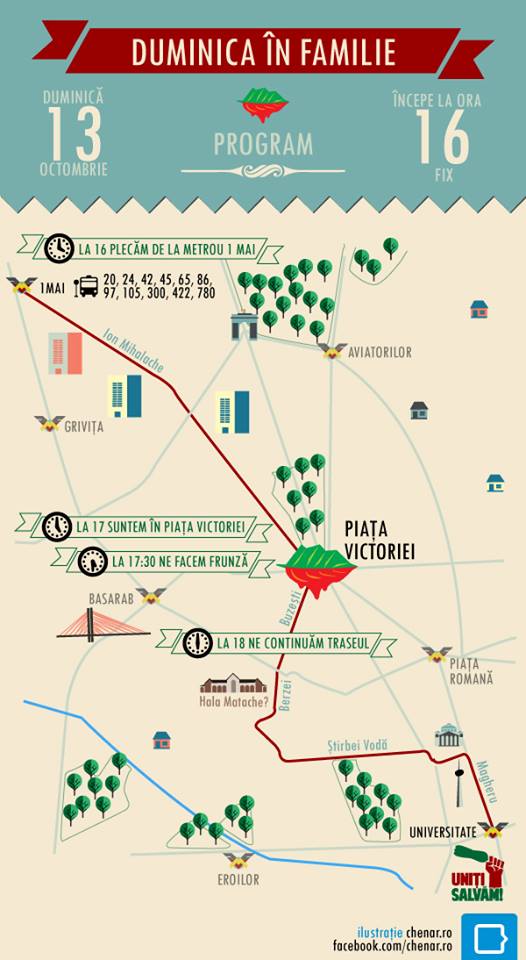 A 7-a runda de proteste incepe duminica, la ora 16:00, cand se pleaca de la statia de metrou 1 Mai pe urmatorul traseu: