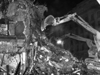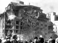 Curiozitatea si inconstienta, ca altfel nu am cum sa ii spun..m-au facut sa plec prin oras sa vad cladirile daramate, fara sa ma gandesc nicio secunda ca acolo murisera oameni. Refuzam sa asociez o cladire prabusita cu oamenii care s-au aflat acolo. Nu pot sa va descriu in cuvinte sentimentul pe care il ai, atunci cand realizezi si vezi dezastrul pe viu. Atmosfera era suprasaturata de praf. Un praf care nu s-a ridicat mult timp. Atunci am vazut un Bucuresti prafuit, cenusiu, tacut si trist, asa cum nu il vazusem niciodata. La Lizeanu, o parte din blocul de pe colt intrase 2 etaje sub pamant, iar cele ramase erau parca taiate cu fierastraul pe diagonala. Partea care nu se daramase avea atasate jumatati de sufragerii, din care atarnau covoare si ce se mai afla in partea nesectionata. La un etaj, un televizor pe masuta, la altul clasica vitrina cu cristaluri, la unul o pianina tacuta…. Socant si incredibil de trist.