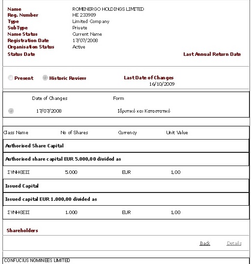 SIF-ul a cumpărat obligațiunile în condițiile în care acțiunile Romenergo erau gajate de patru luni la banca BRD Societe General. Firma cipriotă Romenergo Holdings Limited a garantat împrumutul bancare cu pachetul de 99,9% pe care îl deținea în Romenergo SA.