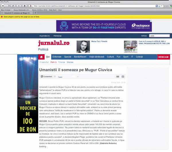 Într-un alt articol din Jurnalul Național, publicat în 30 august 2004, Ciuvică e somat să retracteze tot, altfel va răspunde în justiție.