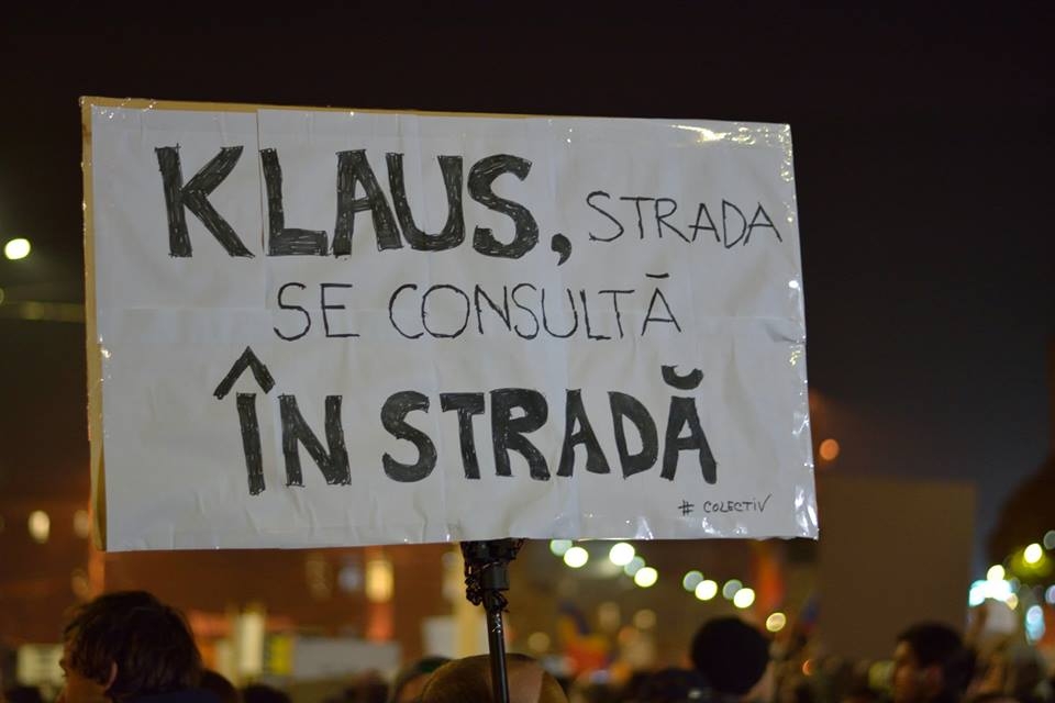 Manifestanţii strigă: „Colectiv, Colectiv”, „Toate partidele, aceeaşi mizerie” şi „Afară, afară cu mafia din ţară”.