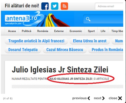 Materialul inițial al Antenei 3 nu mai poate fi găsit nici în căutările Google, cel mai recent material returnat de motorul de căutare fiind știrea din urmă cu 20 de ore când Antena 3 anunța prezența lui Iglesias Jr la Sinteza Zilei: