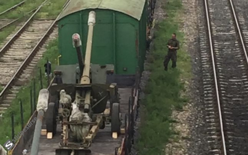 Zeci de tunuri amplasate într-o garnitură de tren au staţionat și apoi au trazitat Gara Vaslui, sub paza unor soldaţi. Oamenii care au trecut prin zonă intrat în panică. Ei au postat pe reţelele de socializare mesaje prin care anunţau prezenţa armamentului greu în Staţia CFR Vaslui.