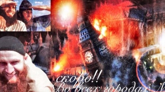O alta imagine arata Parlamentul britanic si Big Ben in flacari, cel mai cunoscut simbol al Marii Britanii fiind infatisat prabusindu-se. Pe poza editata este scris si un mesaj care transmite: „In curand!! In toate orasele lumii”.