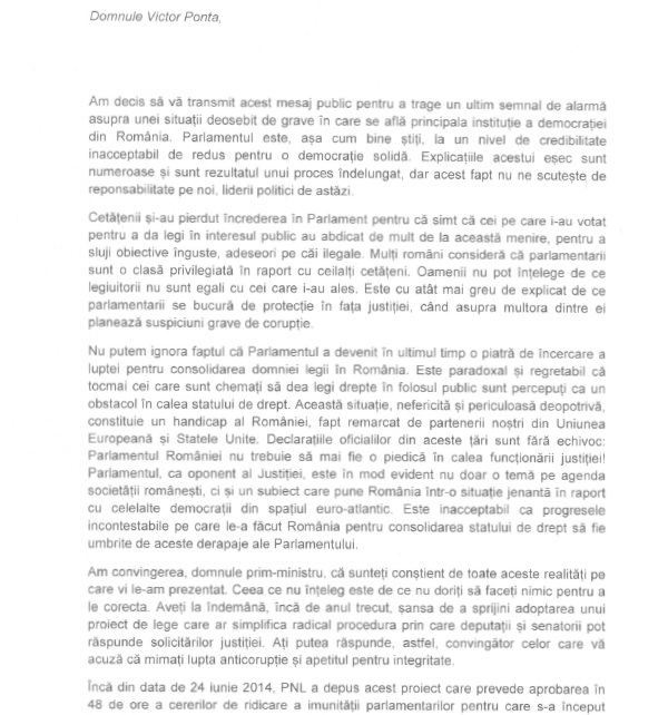Copreședintele PNL, Alina Gorghiu, i-a transmis o scrisoare deschisă premierului Victor Ponta prin intermediul căreia vrea sa tragă un semnal de alarmă asupra unei situații deosebit de grave în care se află Parlamentul.