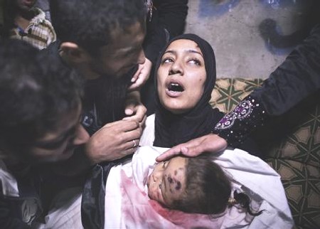 Luni dimineata, in cea de-a sasea zi de atacuri, au fost ucisi zece palestinieni printre care si un copil de 5 ani. Situatia umanitara este alarmanta deoarece Fasia Gaza este unul dintre teritoriile cu cea mai mare densitate de populatie din lume, cu 1 040 000 de locuitori pe o suprafata de 360 km patrati.
