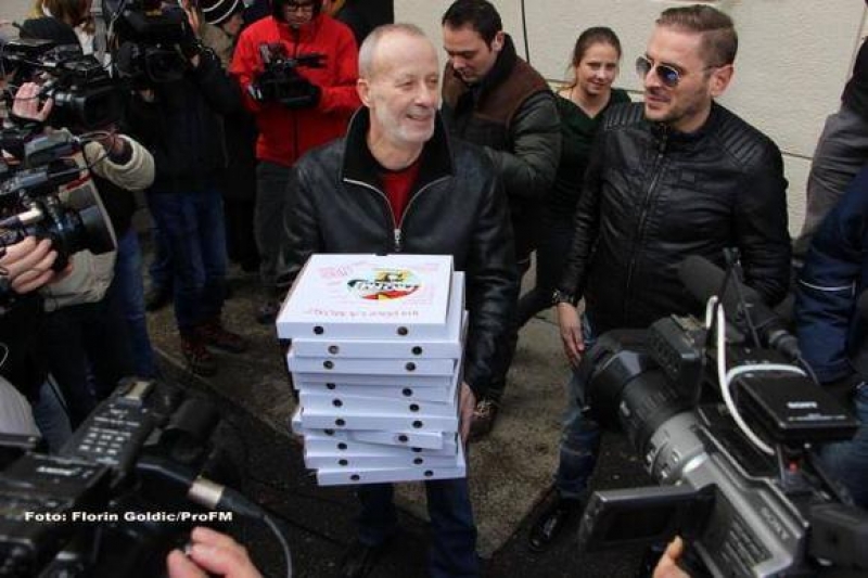 „Presa primeşte şi ea pizza. Poftă bună! Să fiţi o presă bună”, le-a urat Gheorghe jurnaliştilor.