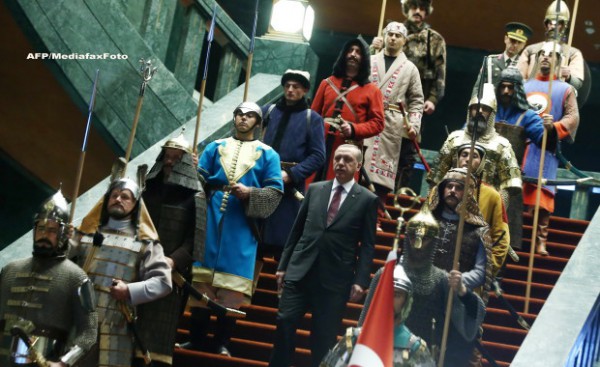 Presedintele Turciei, Recep Tayyip Erdogan, a surprins opinia publica luni, 12 ianuarie, dupa ce a aparut la noul sau palat prezidential inconjurat de ieniceri, ca in vremea Imperiului Otoman.