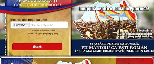 ”Arborează Drapelul României în casa ta virtuală! De Ziua Națională a României personalizează-ți pagina de Facebook, descarcă și folosește imaginile interactive accesând platforma noastră. De Ziua Națională a României schimbă-ți cover-ul de Facebook cu unul personalizat generat de aplicația noastră”, se arată pe pagina de Facebook a MApN.