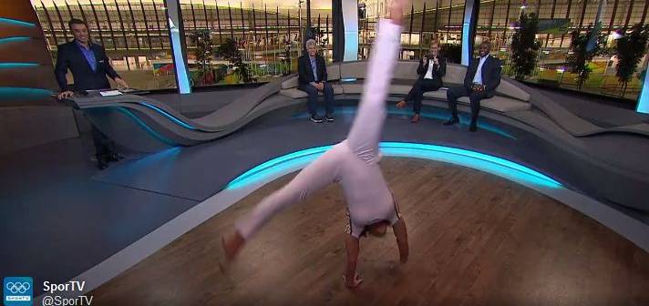 Nadia Comăneci a fost provocată, în direct la Sport TV, de fostul înotător Marc Spitz să repete exerciţiul de la sol pe care l-a făcut în 1976 la Montreal, relatează b365.ro