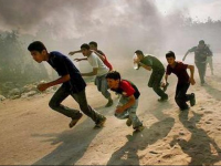 Pentru prima oară de la declanşarea confruntărilor, o rachetă trasă din Siria a căzut pe Platoul Golan ocupat de Israel, fără să provoace victime. Armata israeliană a replicat prin tiruri de artilerie vizând poziţii ale forţelor siriene şi a asigurat că „ţintele atinse au fost identificate”.