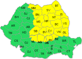 Vantul va avea intensificari cu viteze de peste 60 km/h, indeosebi in estul tarii, si de peste 80…90 km/h la munte.