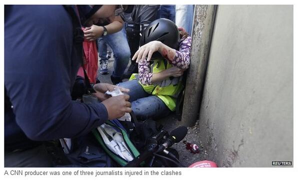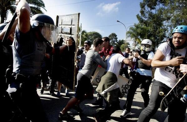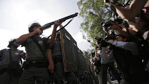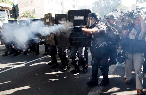 Mondialul – cel mai scump spectacol al lumii organizat de FIFA, este plătit din munca şi din banii lor. Forţele de ordine au folosit, joi, grenade lacrimogene şi gaze paralizante, gloanţe şi bastoane de cauciuc împotriva demonstranţilor din Sao Paolo. În timpul confruntărilor, jurnalista CNN Barbara Arvanitidis a fost rănită de un şrapnel provenit din muniţia forţelor de ordine.