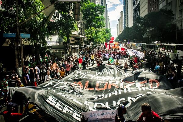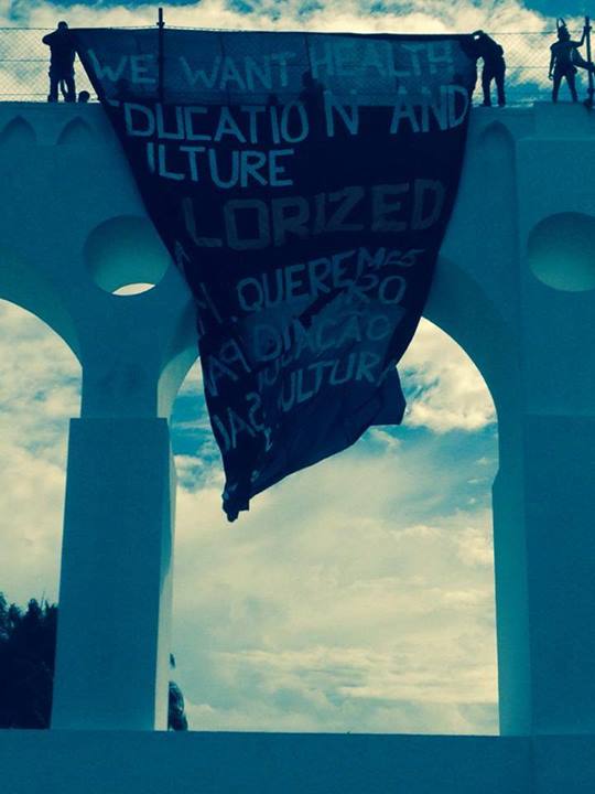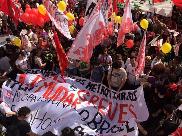 Brazilienii au început protestele, simultan în 21 de oraşe, cu două ore înainte de ceremonia de deschidere a Campionatului Mondial de Fotbal. La capătul unui lung an de proteste, declanşat de faptul că autorităţile au cheltuit pentru organizarea Cupei Mondiale nu mai puţin de 11 miliarde de euro – într-o ţară în care sărăcia este un mod de represiune, 12 milioane de brazilieni nu au mijloace de subzistenţă, iar alte milioane sunt excluse social -, protestatarii sunt decişi să boicoteze Mondialul, iar numărul lor creşte exponenţial. Mesajul străzii este „Fuck FIFA!”, „Vrem educaţie, sănătate şi cultură!”.
