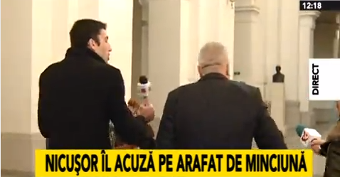 Jurnalistul nu i-a răspuns, s-a întors cu spatele şi a început să vorbească la telefon probabil cu şefii săi. Ulterior, baronul a plecat în trombă de la locul declaraţiilor, iar reporterul s-a ţinut cu microfonul după el încercând să-i smulgă o declaraţie, relatează reportervirtual.ro