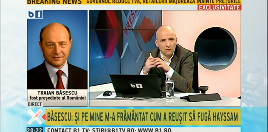 „Revenind la subiectul pe care îl discutați, trebuie să știți, un lucru care m-a frământat și pe mine până la terminarea mandatului, cum a reușit să fugă Omar Hayssam din țară. O parte din mecanism, din Constanța până în Siria s-a aflat, problema e cu sprijinul cui a ajuns până la Constanța. Eu am întrebat: avem o înregistrare a operației care i s-a făcut lui Hayssam în penitenciar? (..) Am întrebat: dacă vreo monstră s-a prelevat din pancreasul care i s-a tăiat. Nu exista nimic. Pentru mine a fost mereu un mister și trebuie să recunosc că atunci am luat-o de-avalma.  (..) Când ani de zile cât l-au supravegheat structurile noastre prin Siria, Liban, Irak, n-a dat niciodată semne de boală, ori un om cu pancreasul tăiat și (..) Acum, că se încearcă a se împinge lucrurile la Băsescu e la modă. Sunt mulți oameni chemați la DNA și întrebați: domne da ceva despre Băsescu știți? Am informații în acest sens. Oameni care au făcut astfel de declarații în fața judecătorului, în instanță. Că oamenii sunt întrebați de procurori dacă știu ceva de Băsescu. Eu vă spun două lucruri simple: Dacă aș fi fost parte a scoaterii lui Hayssam din țară în niciun caz n-aș fi putut să destitui pe Procurorul General și pe șefii de servicii, și în niciun caz nu l-aș fi adus înapoi. Pentru că operațiunea a avut un gir politic la cel mai înalt nivel. Prostiile astea servite populației de tot felul de lichele fac parte din  categoria celor care tremură la venirea lui Hayssam în țară”, a declarat Băsescu.