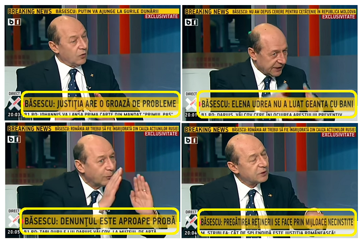 N-o să comentez declarațiile de aseară ale lui Traian Băsescu de la B1 TV. Cine nu le-a ascultat își poate face o idee aici. Mie, Traian Băsescu mi-a făcut aseară impresia unui om care a picat din Lună după o lungă absență din România și constată surprins „o groază de probleme” ale Justiției… Doar că „groaza” asta de probleme, „prea numeroși procurori care au devenit judecători”, „acoperiții din Justiție”, „procurorii care-și pun scalpuri de politicieni la cingătoare” și alte asemenea, dacă sunt reale, atunci sunt rezultatul a 10 ani în care Traian Băsescu, nu altcineva, le-a cocoloșit, le-a protejat și le-a promovat explicându-ne cum sistemul de Justiție este prea-prea și foarte-foarte. Punct. Ce să mai zici?!