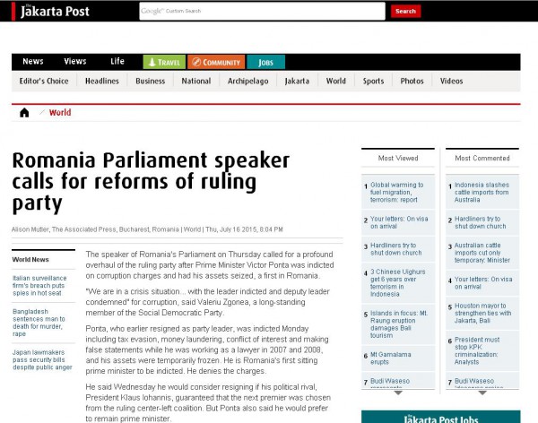 Interviul este deja citat în presa internaţională, ajungând chiar şi în Indonezia. Jakarta Post îl citează pe Zgonea, care a spus că PSD are nevoie de „reforme profunde”.