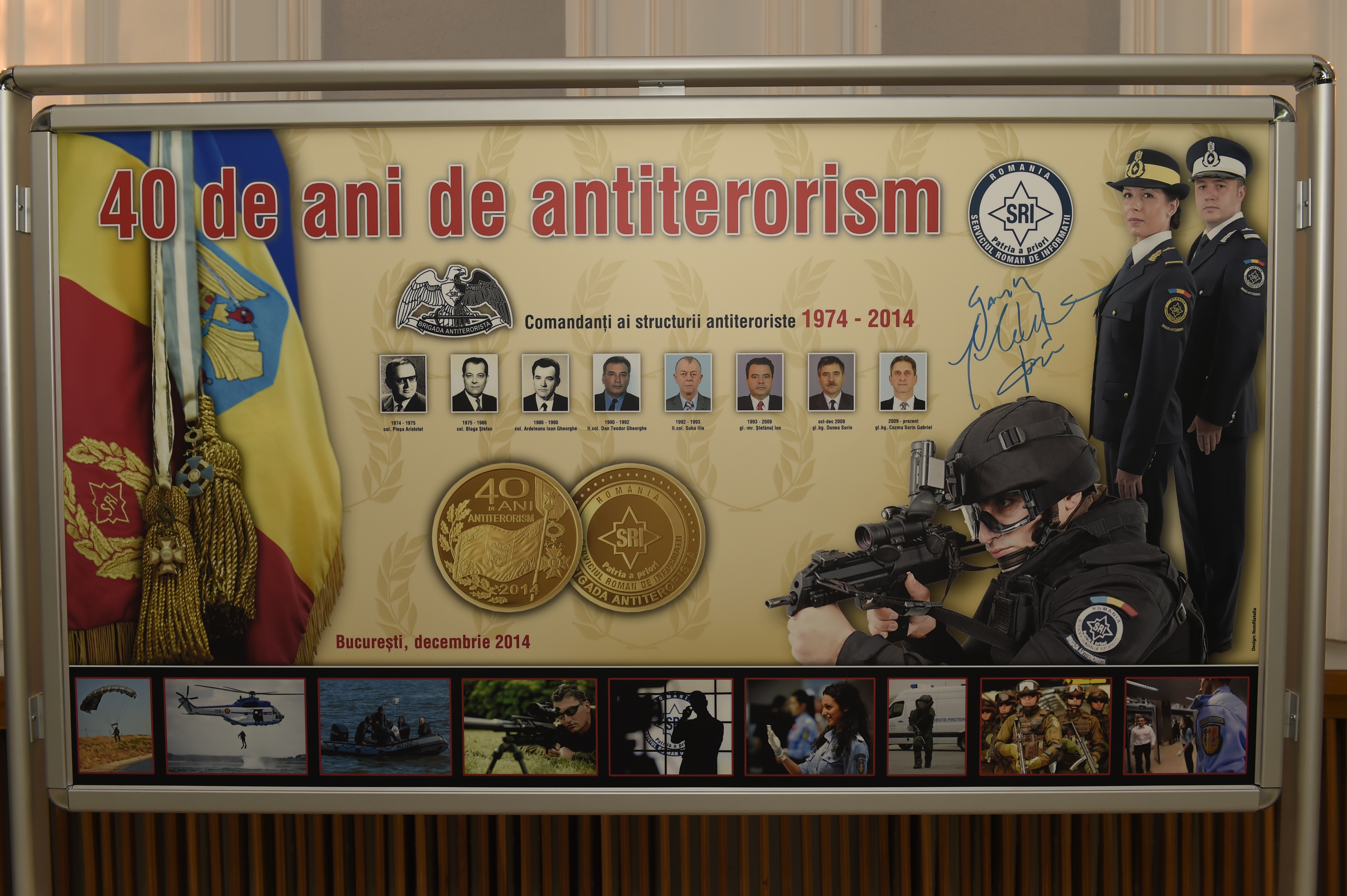 Prilejul reuniunii festive a SRI din 18 decembrie 2014, conform anunţului în limbă de lemn de pe siteul principalului serviciu intern de informaţii: seria de manifestări destinate marcării Zilei Luptătorului Antiterorist şi aniversării a 40 de ani de la înfiinţarea primelor structuri româneşti cu responsabilităţi în materie antiteroristă.