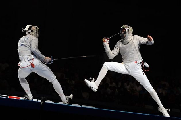 Echipa masculina a Romaniei formata din Tiberiu Dolniceanu, medaliat cu bronz la Budapesta in proba individuala, Alin Badea, Ciprian Galatanu si Iulian Teodosiu au trecut in saisprezecimi de Australia, cu scorul de 45-15, in optimi au invins Polonia cu 45-37, iar in sferturile de finala au dispus de Ungaria la diferenta de o singura tusa, 45-44.