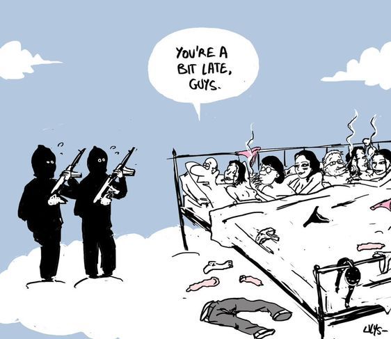 Numărul de miercuri este făcut doar de membrii redacţiei şi de colaboratorii lor tradiţionali. În el vor fi prezenţi şi cei decedaţi, ale căror caricaturi şi articole se vor afla exact la locurile obişnuite. Colectivul , supranumit şi “Supravieţuitorii” au evitat necrologurile pentru că acestea nu sunt în stilul publicaţiei.