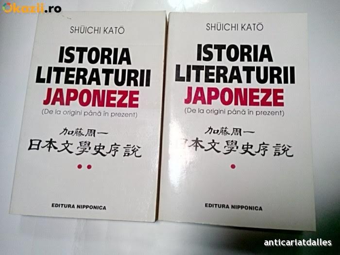 O istorie a literaturii japoneze este o lectură fascinantă. Veți descoperi un alt univers, cu un alt mod de gandire, cu alte paradigme morale și cu referințe culturale pe care cu greu vi le-ați putea imagina. Suichi Kato va prezinta în a sa Istorie a literaturii japoneze, în două volume, o lume a literaturii despre care doar puțini știu amănunte.