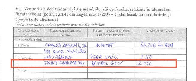 În două declarații de avere succesive (2006 și 2007) ale deputatului PUR/PC Eduard Hellvig apar mențiuni ciudate, cel puțin la prima vedere, despre soție. Astfel: Andreea Hellvig figurează în declarația de avere a soțului ca avînd venituri de la Sprint Pharma SRL pentru “PR & REL. GUV”.