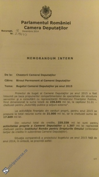 Jurnaliștii de la stiripesurse.ro au publicat documentul aprobat de conducerea Camerei Deputaților:
