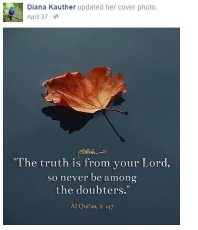 Ultima postare a romancei este din 27 aprilie si reprezinta un citat din Coran.