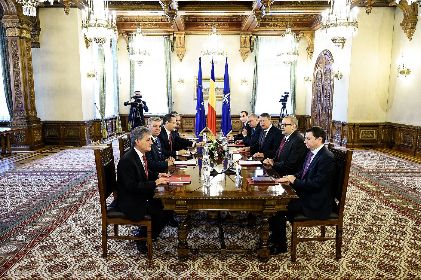 Cristian Şuţu publică o fotografie în care apar Preşedintele, împreună cu staff-ul Admnistraţiei Prezidenţiale, şi liderii PSD. Fotograful surprinde un schimb de priviri mai mult decât grăitor între două personaje aflate la aceeaşi masă, dar în „tabere” diferite.