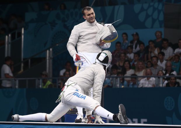 În optimi, România a trecut de Franța cu 45-40, în sferturi tricolorii au dispus cu același scor de Rusia, iar în semifinale au câștigat cu 45-44 în fața Ungariei. Echipa României, antrenată de Florin Zalomir, a evoluat în formula Tiberiu Dolniceanu (CS Dinamo), Iulian Teodosiu (CS Dinamo), Alin Badea (CSA Steaua) și Mădălin Bucur (CS Dinamo).