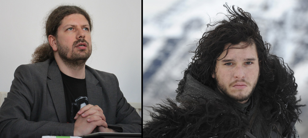 Unul dintre cele mai îndrăgite personaje din serie, Jon Snow, este comparat cu deputatul Remus Cernea. Departe de podoaba capilară vag similară, Snow este forțat să ia decizii dificile, având la dispoziție resurse extrem de limitate – și întotdeauna încarcă să găsească o salvare pentru oamenii din cele 7 regate înaintea venirii iernii. Acest idealism este, probabil, baza comparației.