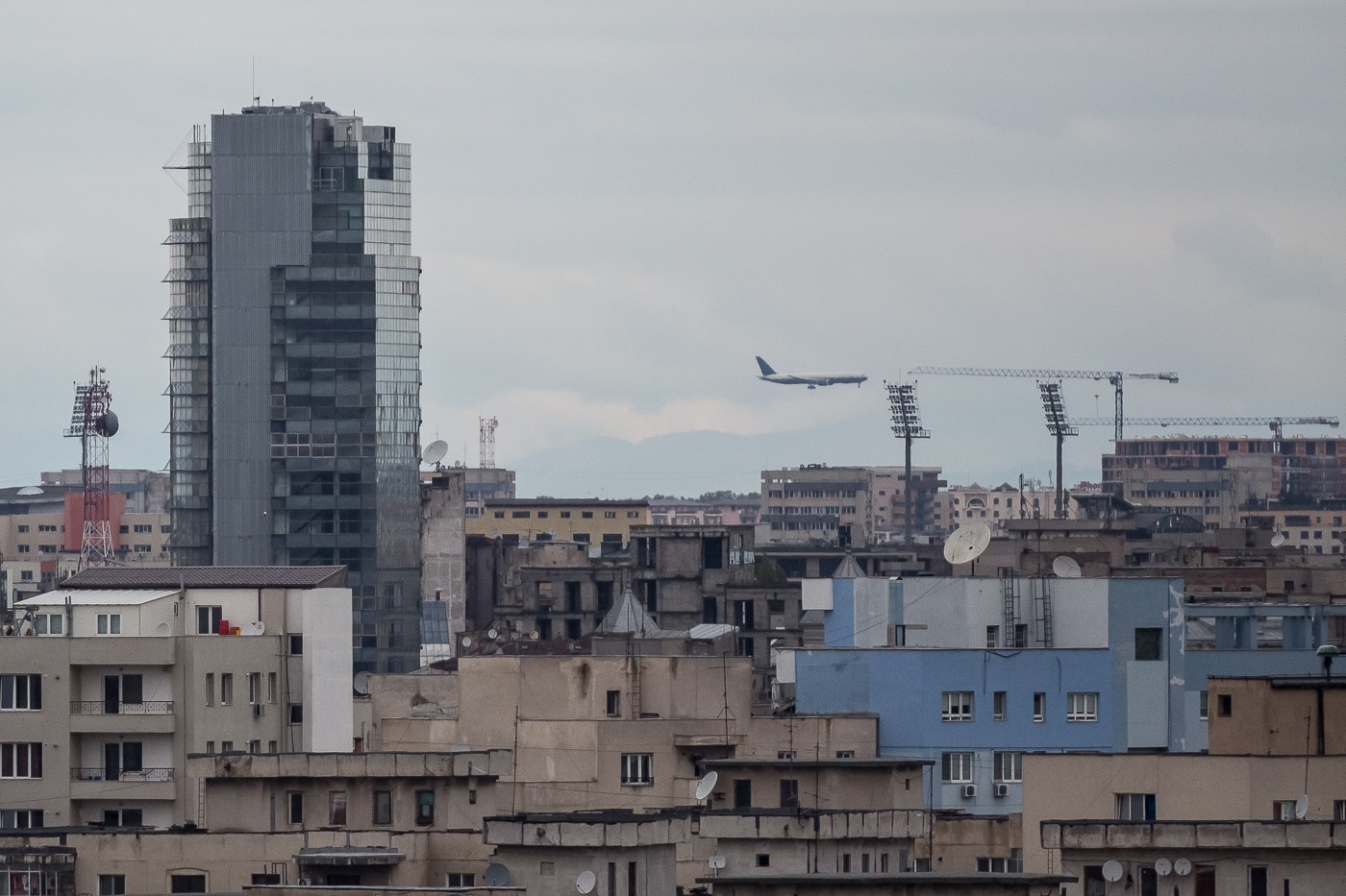 Cristian Vasile fotografiază astăzi la ora 12:06 avionul din imagine, un uriaș Boeing 767 aterizând pe Otopeni. Da, este o fotografie făcută de la 20 de kilometri distanță cu un obiectiv de 600 mm, cadru surprins de pe blocurile Asmita Gardens din Văcărești.