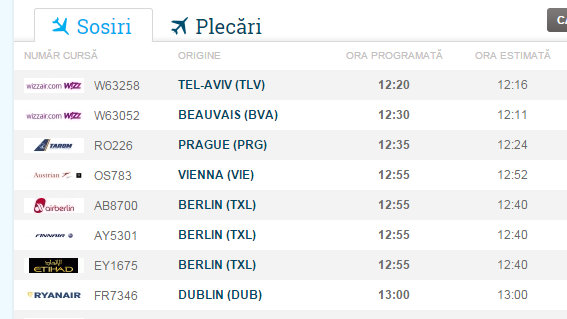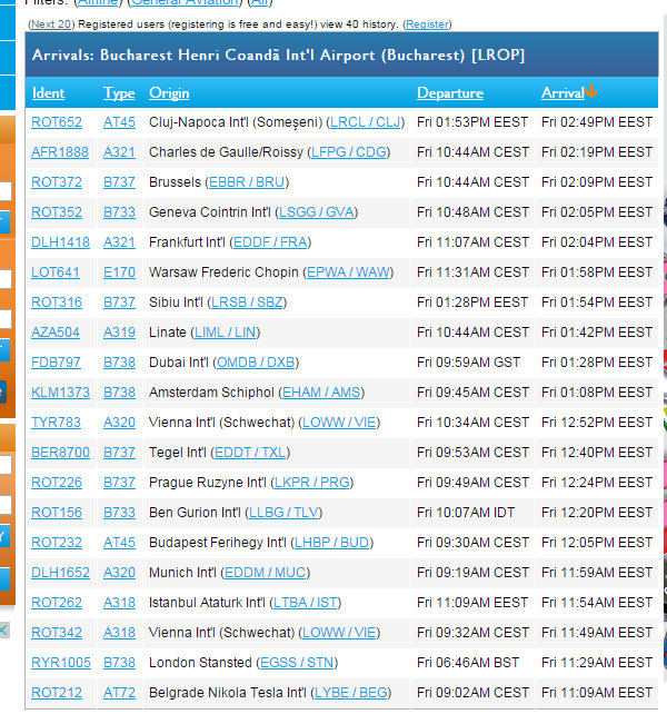Faza ciudată este că zborul nu apare în listele uzuale. Pagina de Sosiri a aeroportului Otopeni nu-l are listat.
