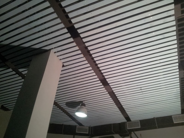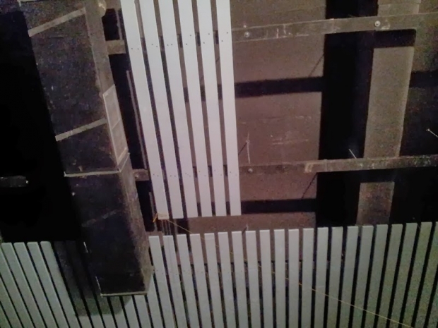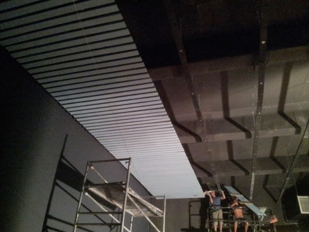 Peste acest burete acustic audiotec s-a montat un tavan de lemn ,calculat pentru intarzierile de sunet din locatie.
