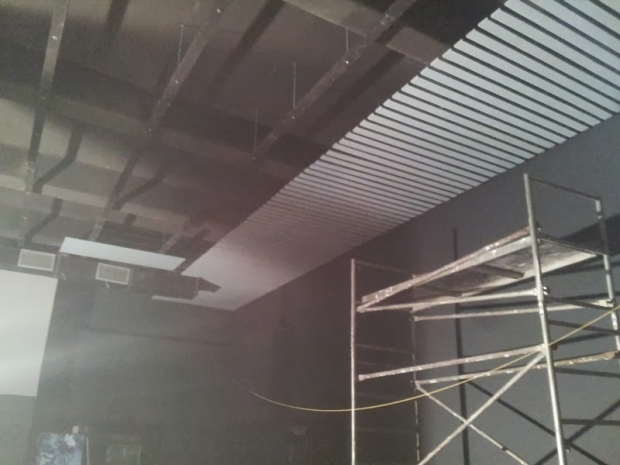 „Am aplicat pe tavan 400 mp de burete absorbant Audiotec ,grosime 30 mm. Acesta sa lipit cu adeziv acustic profesional.