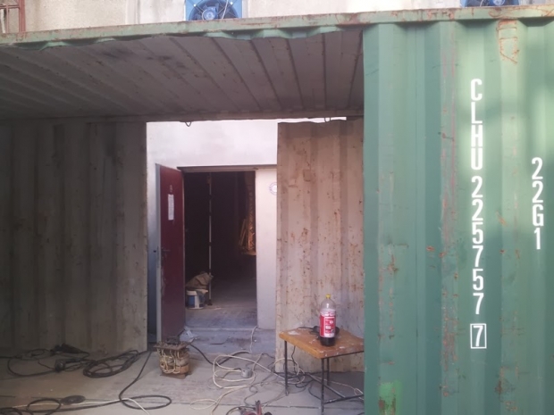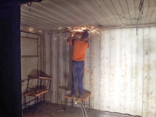 montajul containerului de la intrare ,sigilare hidro si vopsit container