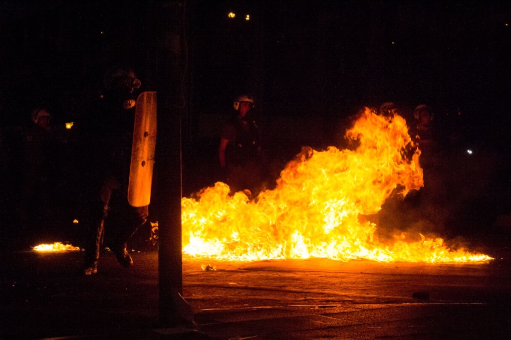 Cocktailurile Molotov au explodat in interiorul localului si au provocat izbucnirea unui incendiu puternic.