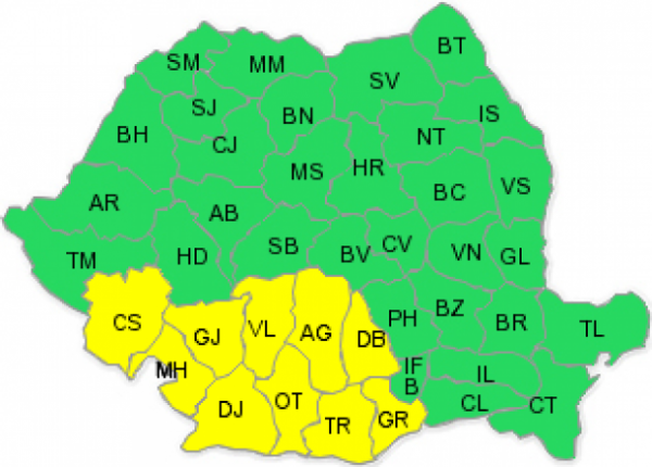„În noaptea de duminică spre luni şi în prima parte a zilei de luni vor fi precipitaţii mixte în Oltenia şi Muntenia, Munţii Banatului şi zona Carpaţilor Meridionali, iar în sudul Banatului vor predomina ploile. Izolat cantităţile de apă vor depăşi 15…20 l/mp. Local se va produce polei. Vântul se va intensifica treptat în sud-vestul şi sudul ţării, atingând viteze de 40…50 km/h, iar în sudul Banatului şi zona montană aferentă vor fi rafale de 70…80 km/h.