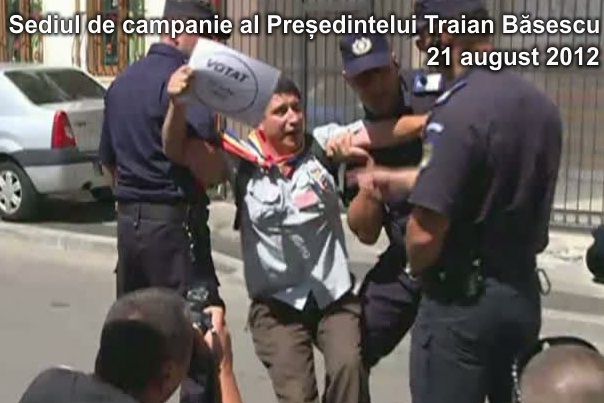 De asemenea, pe 21 august 2012, protestatarul a fost prezent şi la sediul de campanie al lui Traian Băsescu, pe atunci preşedinte al României, în aceeaşi zi în care CCR a invalidat referendumul pentru demiterea fostului şef de stat.