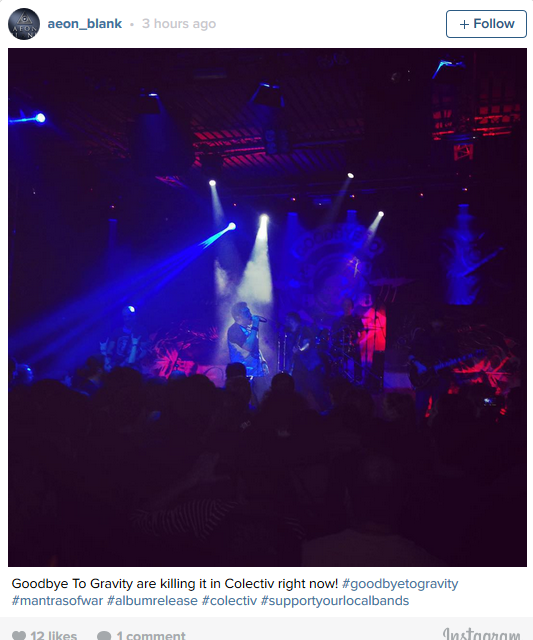 „In momentul tragediei de la Club Clolectiv, trupa Goodbye To Gravity lansa albumul ‘Mantras of War’. Intrarea in club a fost libera, iar accesul publicului în club a fost permis începând cu ora 20:30. Organizatorii anuntau ca acest concert „va beneficia de un show de lumini customizat, precum și de efecte pirotehnice și decoruri special create pentru a reda atmosfera SF a artwork-ului. Nu vor lipsi invitați speciali, un after-party de Halloween marca GTG și multe alte surprize”.