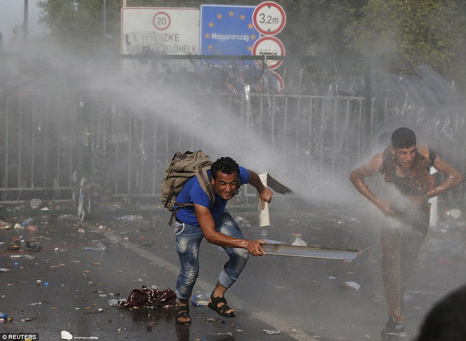 Tunurile cu apa au fost puse in functiune cand imigrantii au reusit sa patrunda prin gardul de sarma ghimpata prin punctul de trecere la frontiera de la Roszke. Politia ungara sustine ca actionarea tunurilor a fost o masura de control a multimii, care arunca cu sticle de apa. Nu exista rapoarte privind eventuale raniri, insa unele persoane lacrimau, dupa utilizarea gazelor lacrimogene.