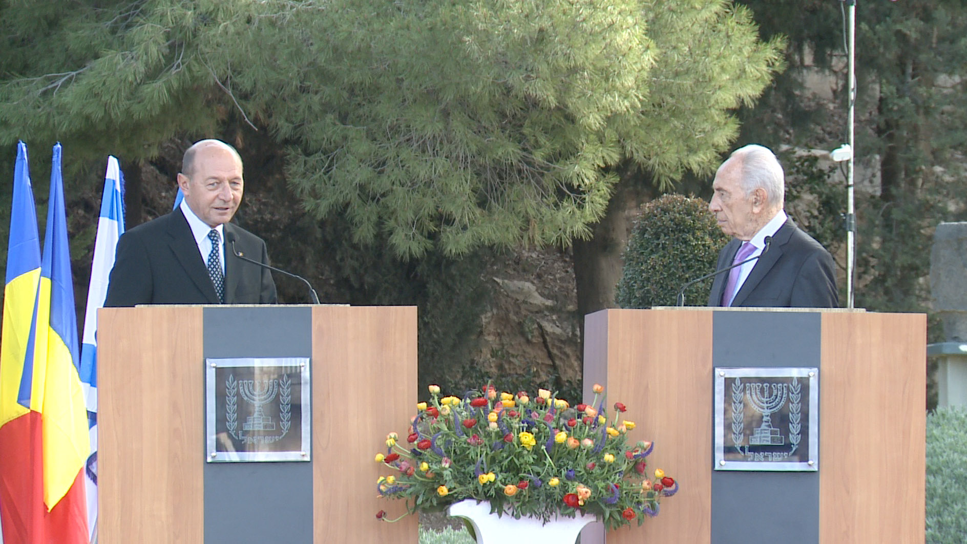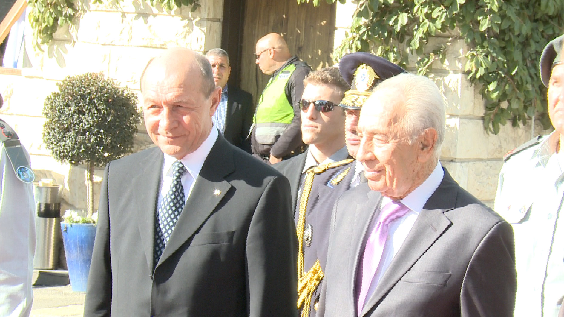 Presedintele Simon Peres l-a intampinat pe Presedintele Romaniei ca pe un lider important, comparandu-l cu un general aflat la comandamentul armatei si aratandu-se incantat de expertiza pe care Traian Basescu a acumulat-o pe vremea cand era comandant de nava.
