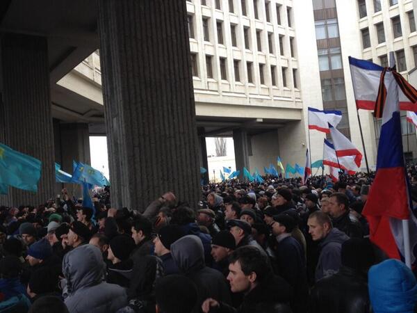 Aproximativ 20.000 de persoane s-au adunat, in fata cladirii legislativului din Crimeea pentru a asista la decizia Radei Supreme cu privinta la apartenenta peninsulei.