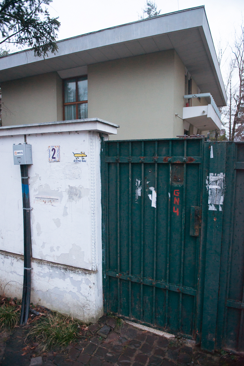 By the way, cînd am fost azi acolo să fac poze casei, erau niște șmecherași cu limuzine Mercedes care tocmai coborau din blocul de birouri alăturat și care, văzîndu-mă pe mine și pe reporterii TVR ce filmau, au purtat următorul dialog: