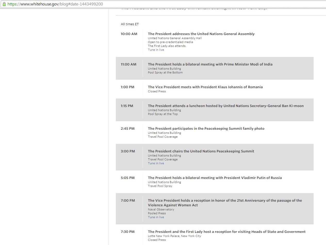 Un astfel de moment e trecut în Programul Casei Albe de pe site-ul Președinției SUA.
