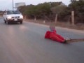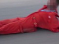 Bărbatul a fost forțat să poarte un costum portocaliu, apoi a fost legat în spatele unui camion şi târât pe stradă.